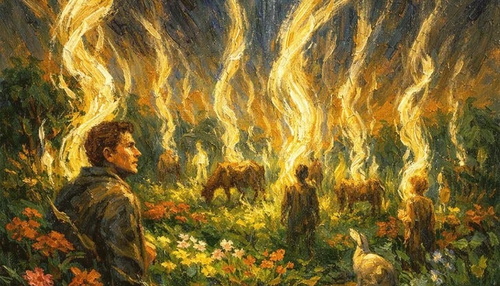 This is humanity in Monroe’s account—a weak animal carrying a fragment of the divine, forever restless, forever seeking something it cannot name, driven by a longing that can never be satisfied within the Garden.